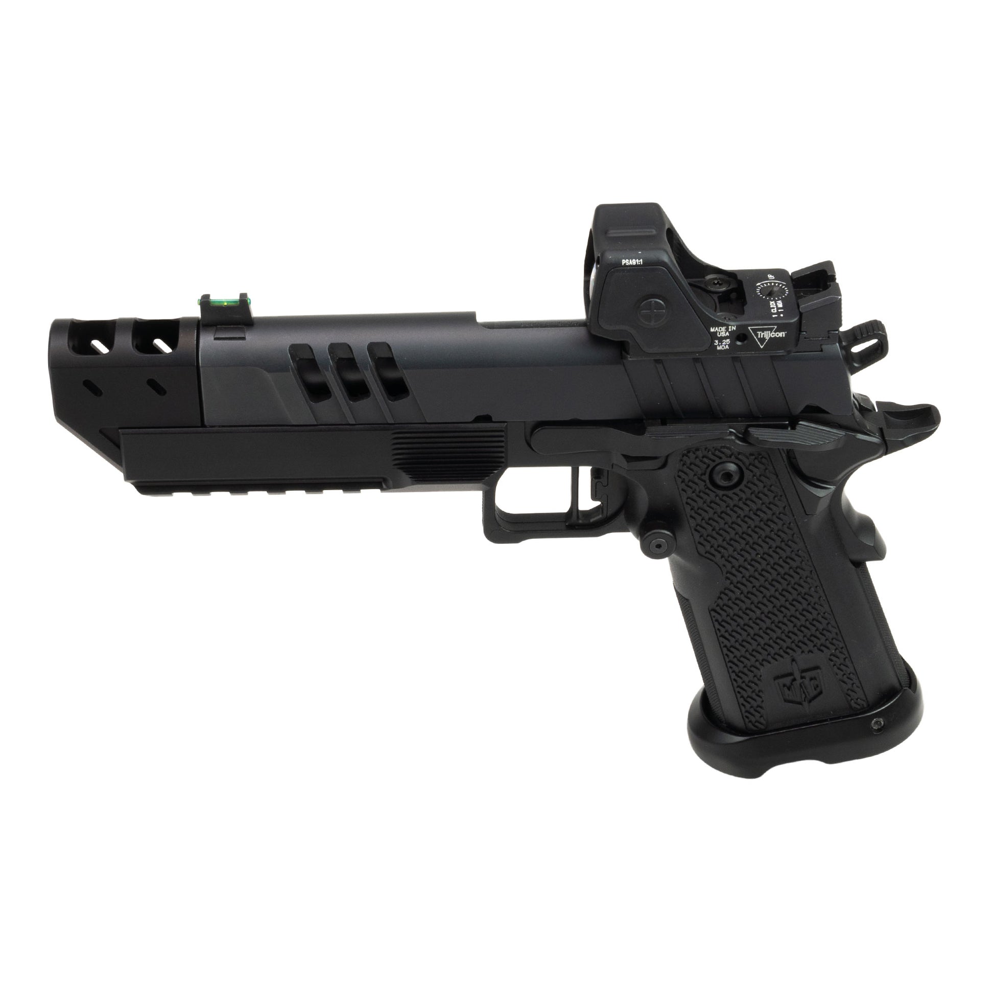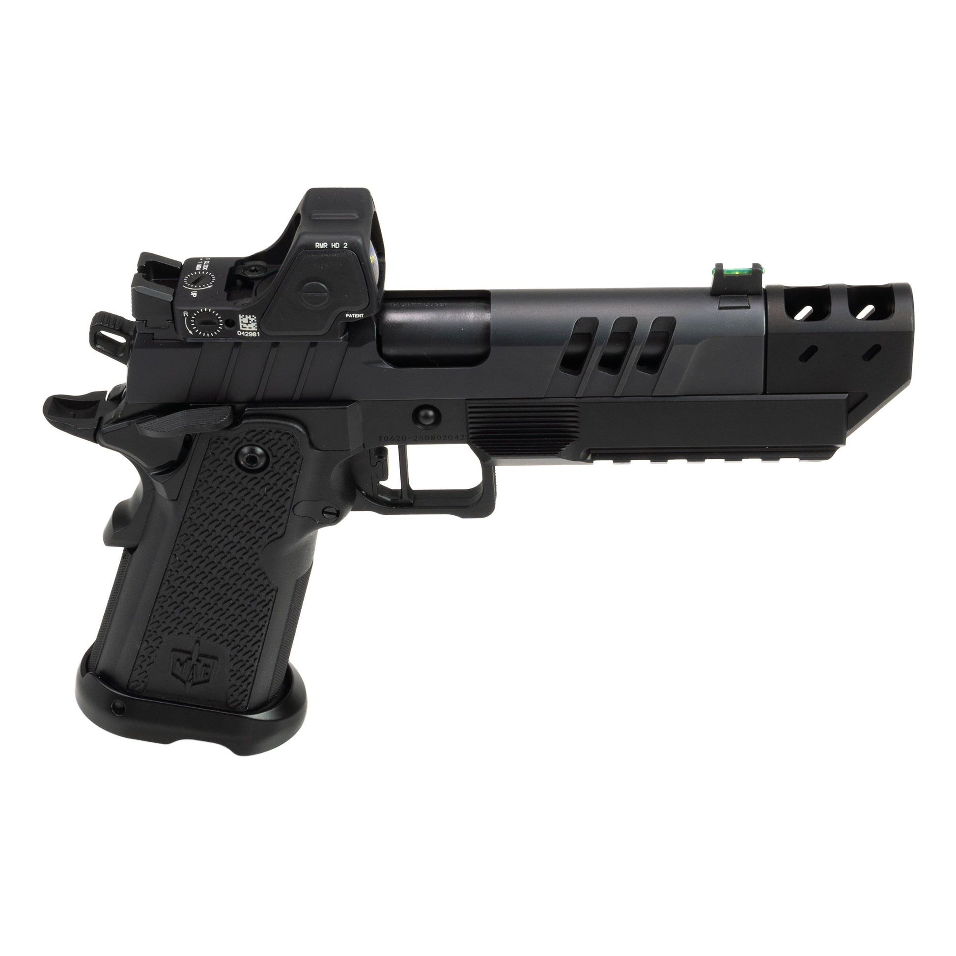 Adding a compensator to a pistol reduces muzzle flip and recoil energy, as a result recoil spring tuning will be required and we offer a spring set for this purpose.
