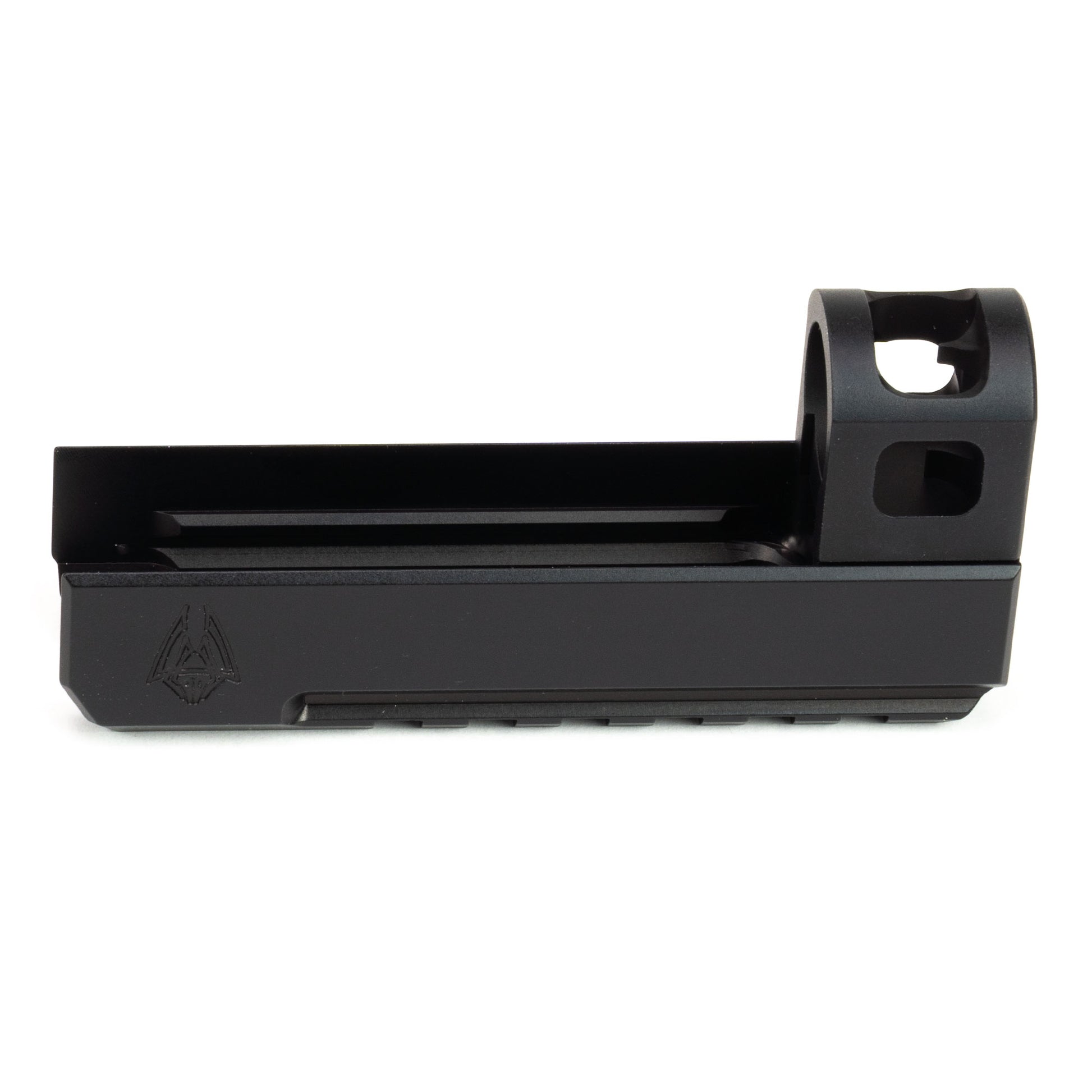 This 50 state legal compensator is made for unthreaded barrels and is anodized black. This compensator has a standard lower rail, for a thumb ledge lower rail please see our other listing.