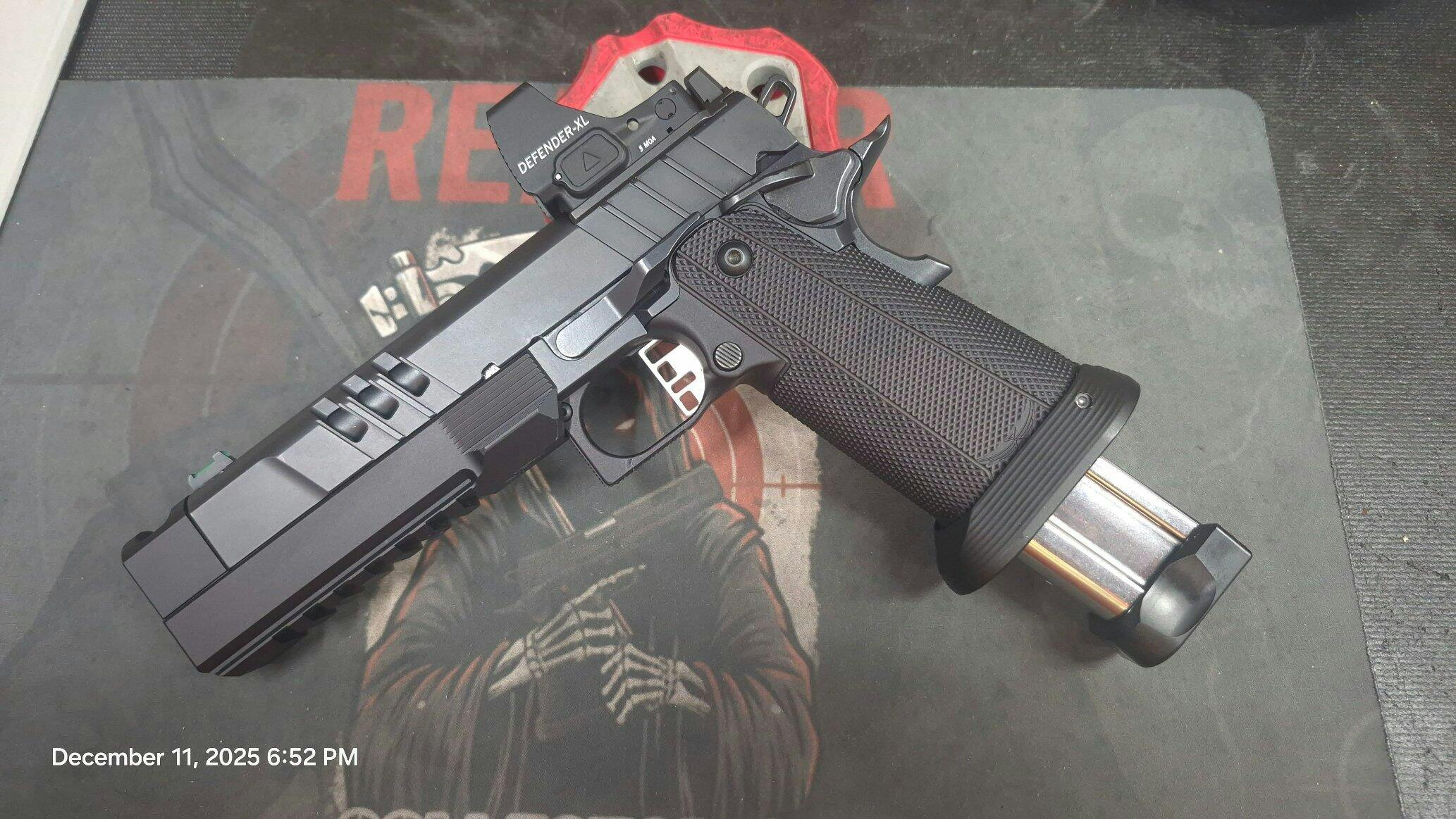 Adding a compensator to a pistol reduces muzzle flip and recoil energy, as a result recoil spring tuning may be required and we offer a spring set for this purpose.