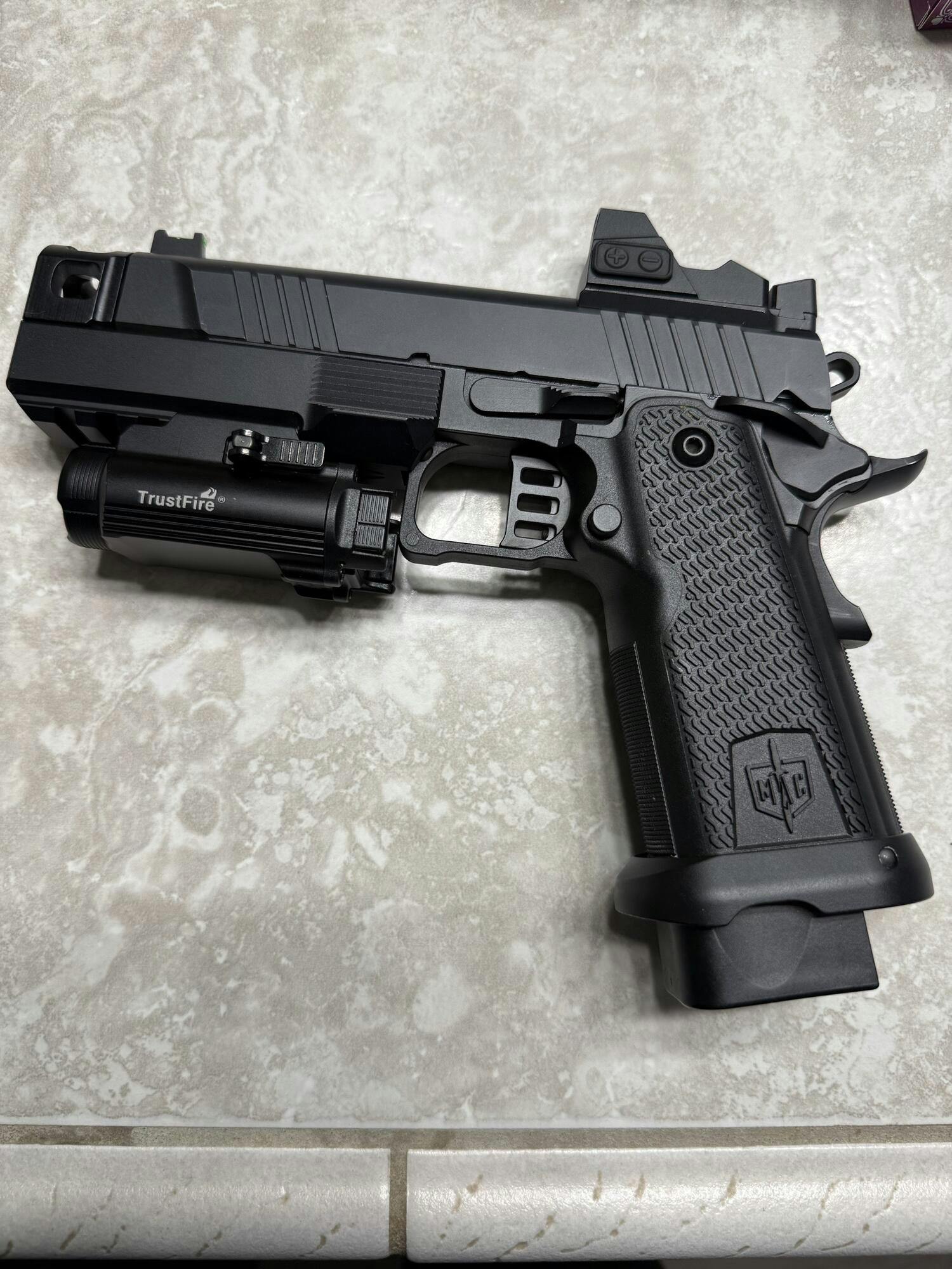 IMPORTANT!!!, before adding to cart you must check your gun and select the correct frame generation from the drop down list. Gen 1 frame guns came with short iron sights, later production Gen 2 frame guns came with much taller suppressor height sights. These two generations have different frame rail dimensions so we made two different lowers that are engraved with M1 and M2. Gen 3 is a completely different design with windows in the front slide serrations and a full length frame, if you have a gen 3 please see our gen 3 comp listings.