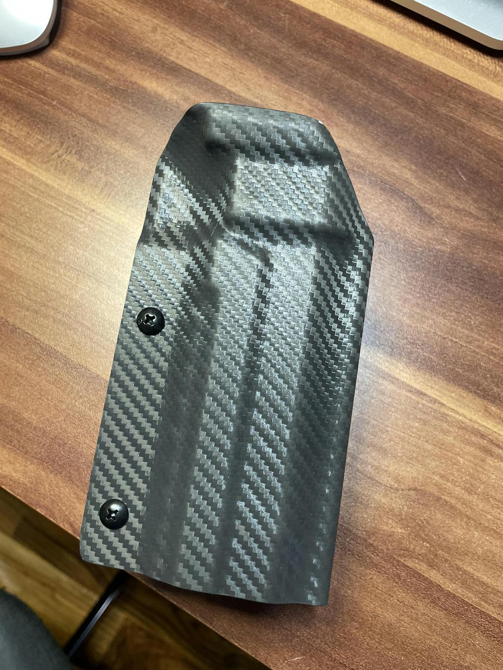 Our holster is constructed from .080 Kydex and is available in a range of colors as well as Holstex for the carbon fiber print. Two tensioner screws allow you to adjust the draw resistance all the way from zero resistance for quick draw drills to positive-click firm engagement for when you are mobile and running a primary.