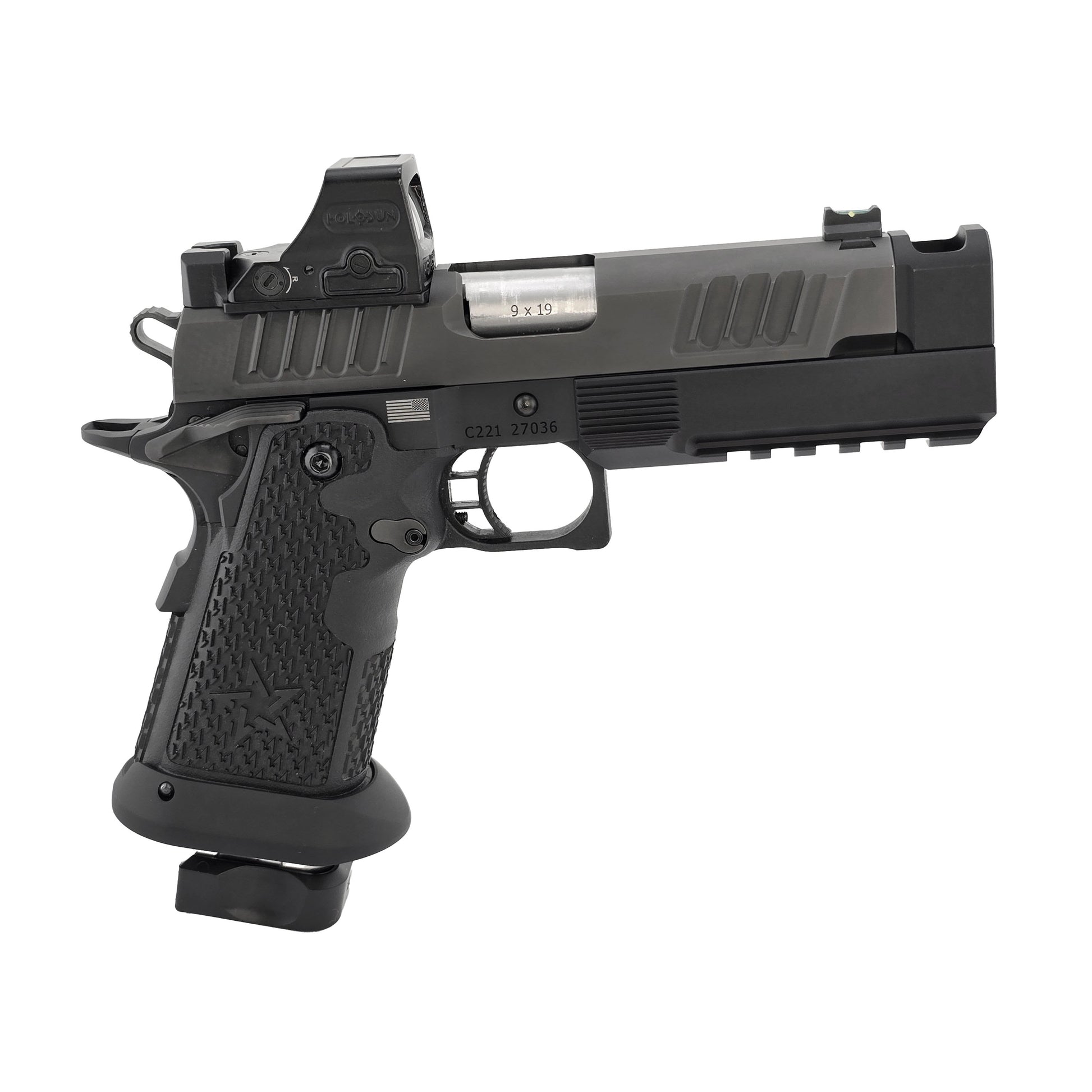 The Underworld Arms Cyclops Compensator for the Staccato C2 is a frame mounted compensator with a large expansion chamber that redirects the gas into a single top port to fight muzzle flip. This compensator is similar in size and performance to the Staccato XC and Sand Hawk.