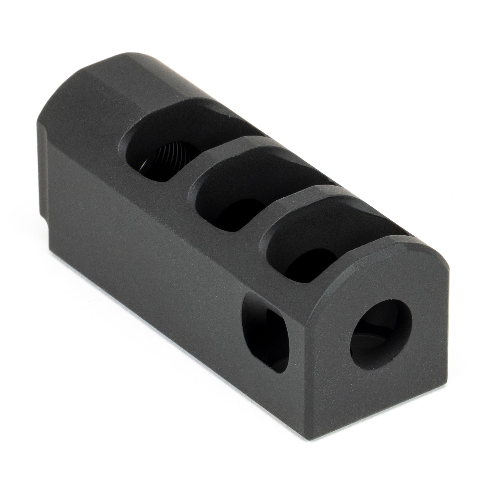 The result of these design elements is an increase in recoil reduction and muzzle flip reduction for an even softer shooting experience than a traditional three top port compensator.